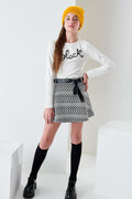 Thin knit skirt with eco-leather belt at the waist.
