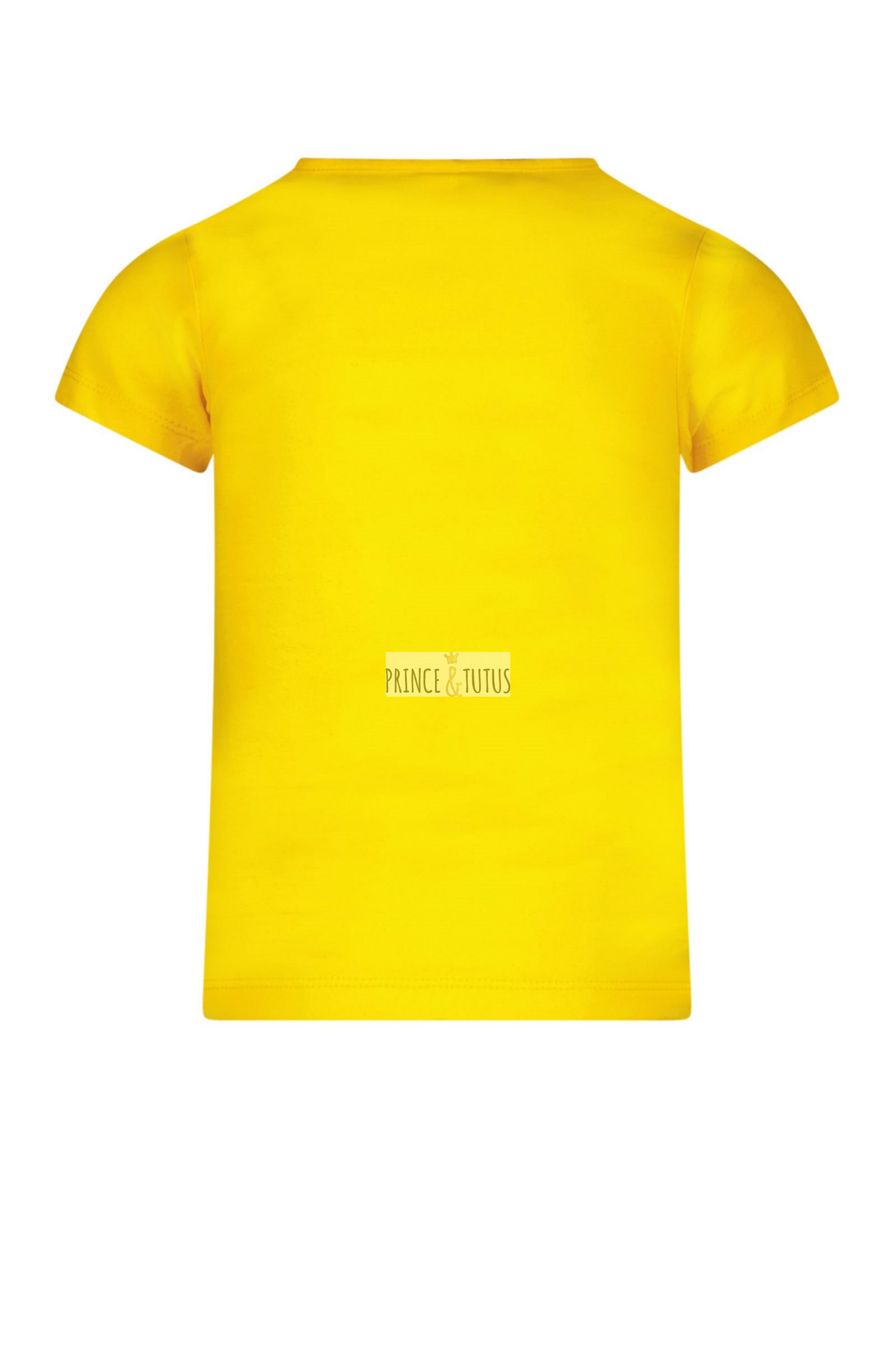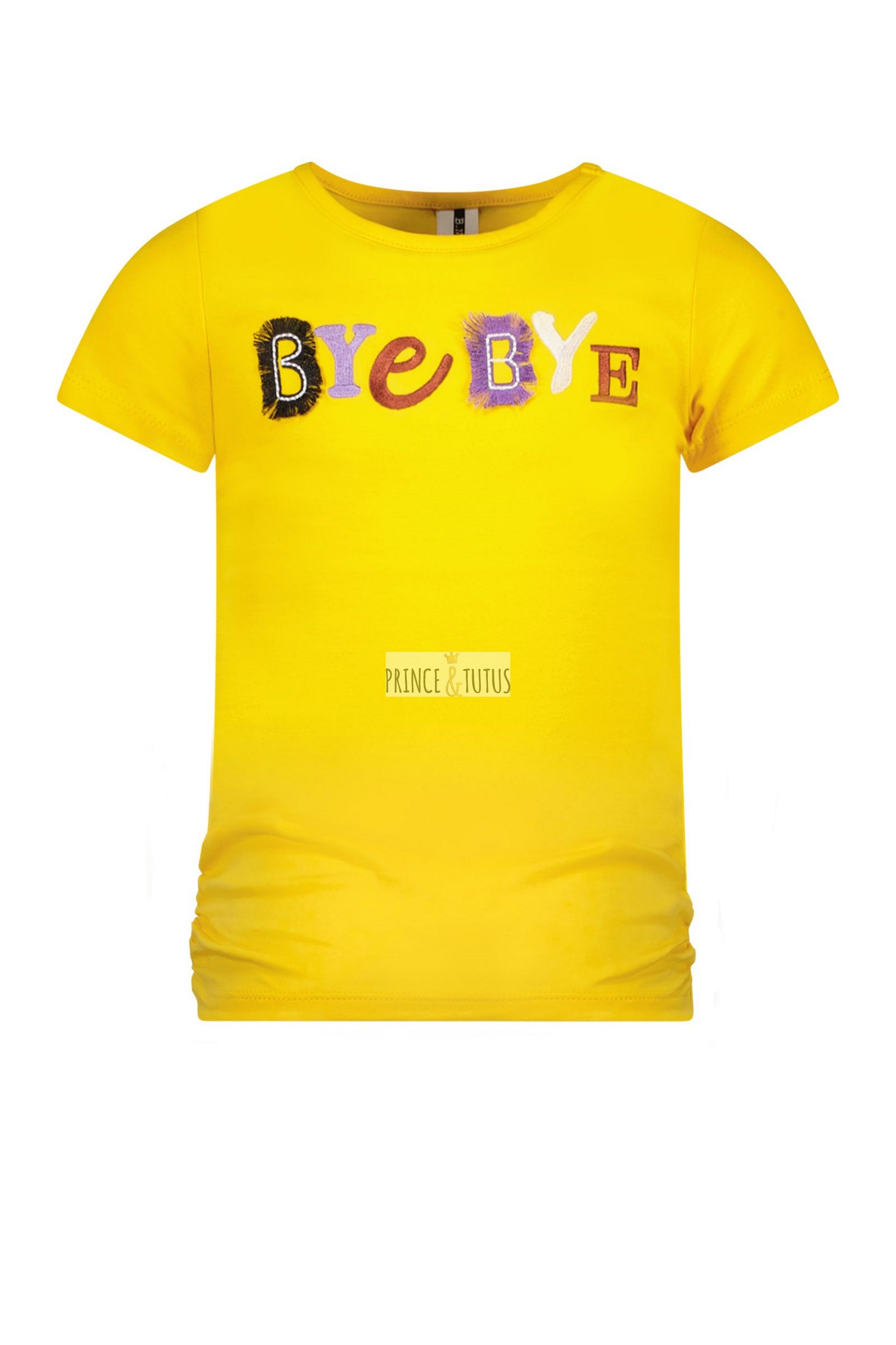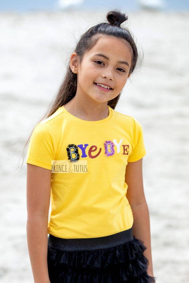 - Yellow short-sleeved t-shirt with embroidery on the chest.