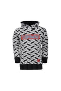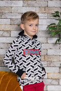- Hoodie à imprimés de formes géométriques blanc, gris et noir.