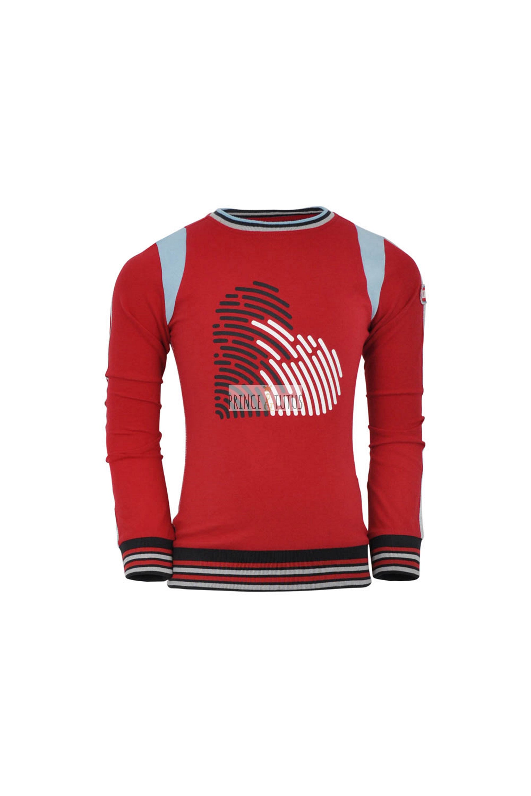 - T-shirt manches longues de couleur rouge avec imprimé de cœur sur la poitrine.